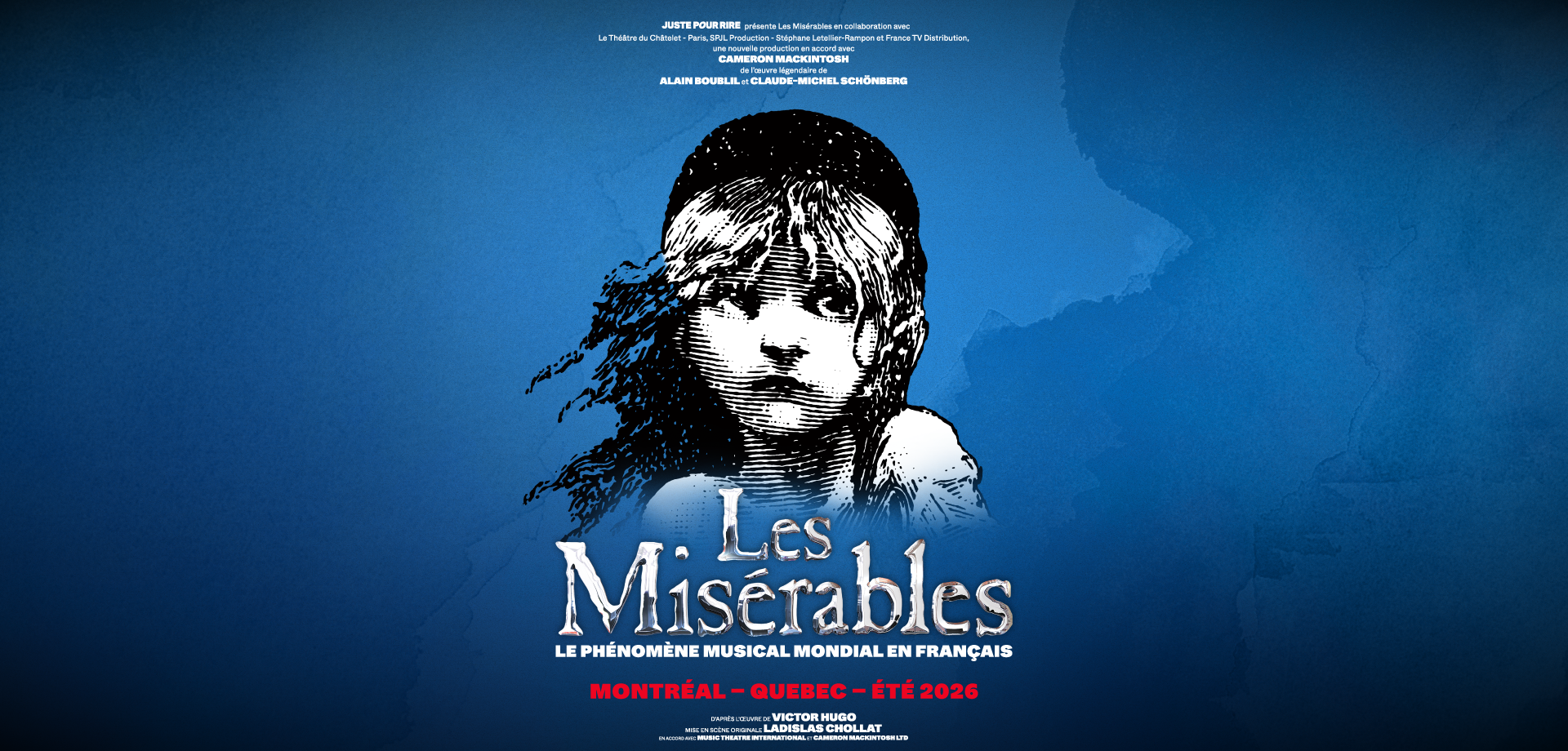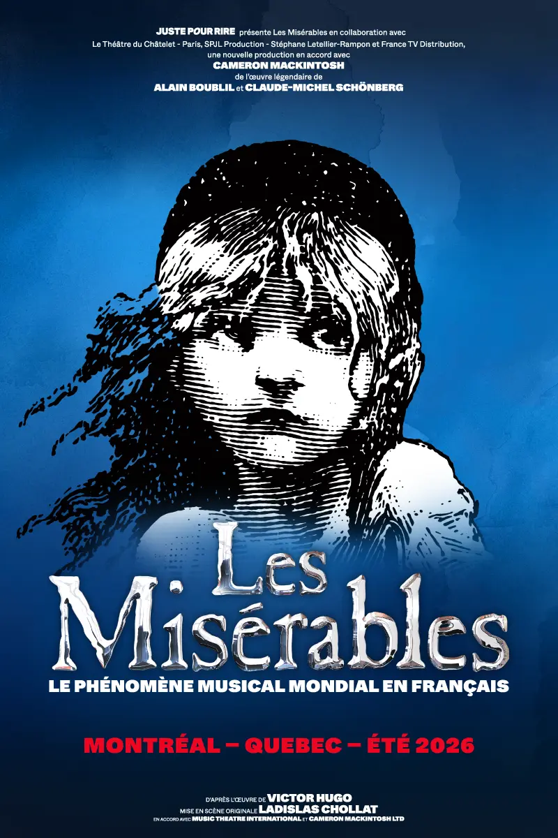 Après un triomphe à Paris, la comédie musicale légendaire d’Alain Boublil et Claude-Michel Schönberg qui a remporté le Molière du Meilleur Spectacle Musical est présenté au Québec par Juste pour rire, en collaboration avec le Théâtre du Châtelet et SPJL Productions – Stéphane Letellier-Rampon et France TV Distribution, en accord avec Cameron Mackintosh.